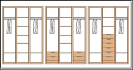 - Dispones de 8 maneras distintas de configurar un armario de 3 puertas con medidas d entre 110 cms y 180 cms apróx